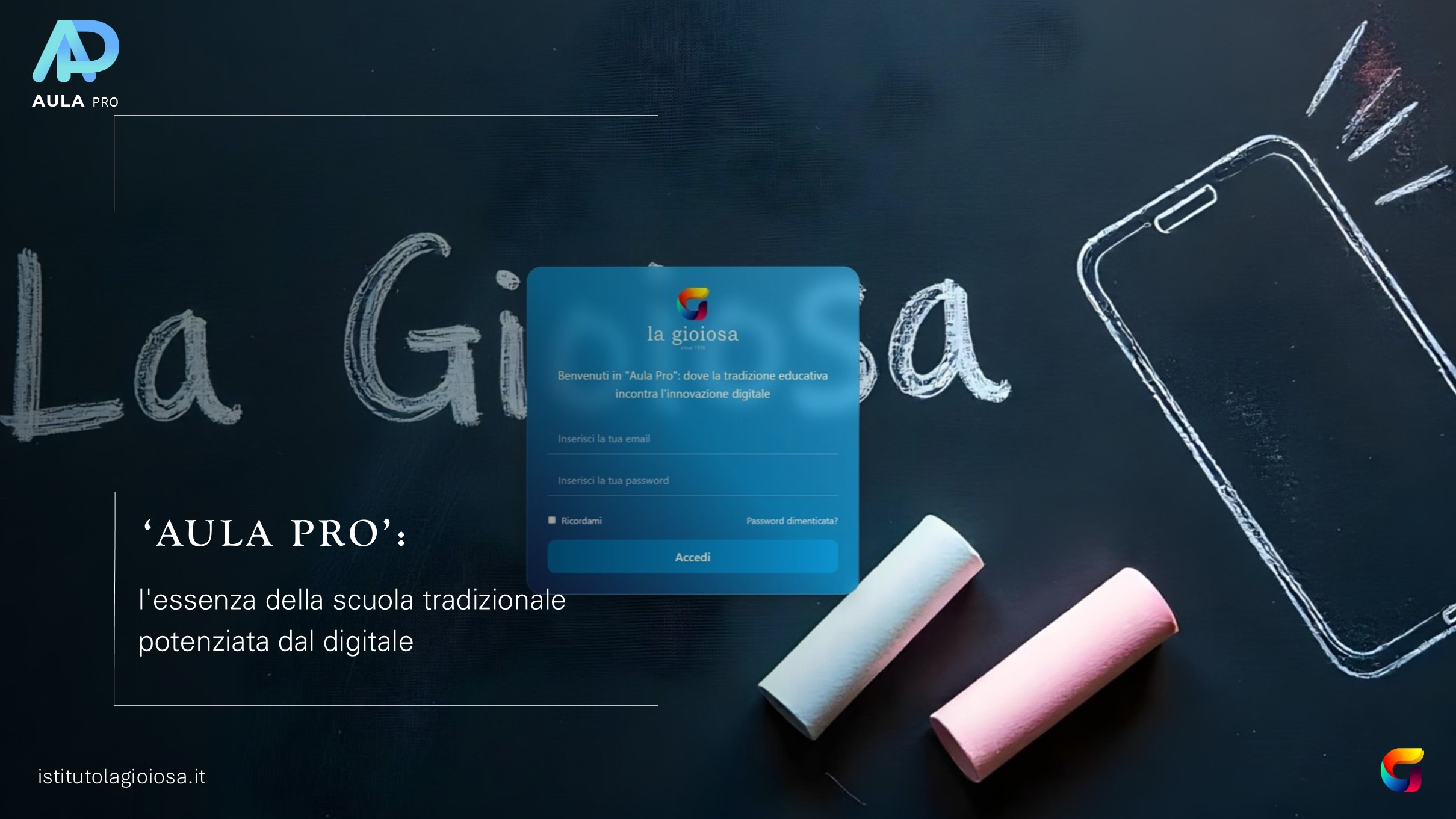 "Dall'anno scolastico 2024/25, l'Istituto 'La Gioiosa' ha implementato il nuovo Registro elettronico 'Aula Pro', una soluzione innovativa sviluppata internamente per rispondere alle specifiche esigenze della nostra comunità scolastica.